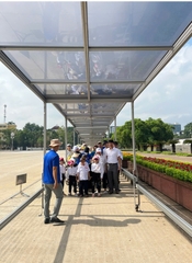 Sáng ngày 18/9/2025, Trung tâm Chăm sóc Người khuyết tật đã tổ chức chuyến tham quan đặc biệt cho các em nhỏ khuyết tật. Điểm đến đầu tiên là Lăng Chủ tịch Hồ Chí Minh, nơi các em được dâng hương, bày tỏ lòng biết ơn đối với Bác Hồ – vị Cha già kính yêu của dân tộc. Khi đến Quảng Trường Ba Đình, các em được xếp hàng ngay ngắn, bước đi nhẹ nhàng vào Lăng viếng Bác. Không gian trang nghiêm khiến ai cũng xúc động. Với nhiều em đây là lần đầu tiên được tận mắt nhìn thấy Lăng Bác, nhìn nhưng gương mặt ấy đầy rạng rỡ và xen lẫn sự xúc động.